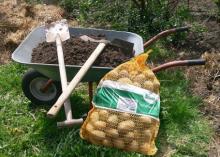 Für ca. 12 Laufmeter Kartoffeln brauche ich 1 und 1/4 Schubkarren mit gut gelagertem Kompost.