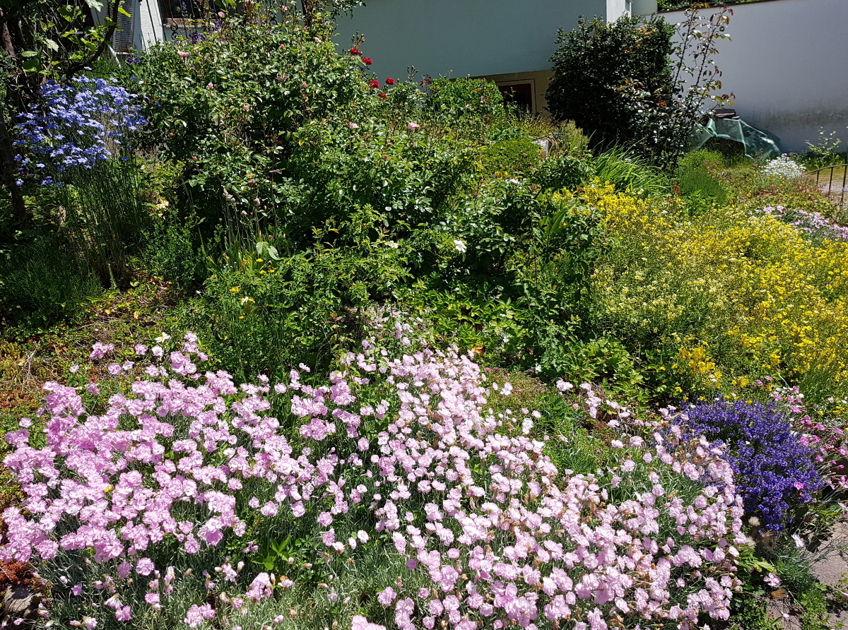 Wir haben den Garten vor ca 2 Jahren in Pflege übernommen und staunen immer wieder, wie schön dieser Südhang blüht.