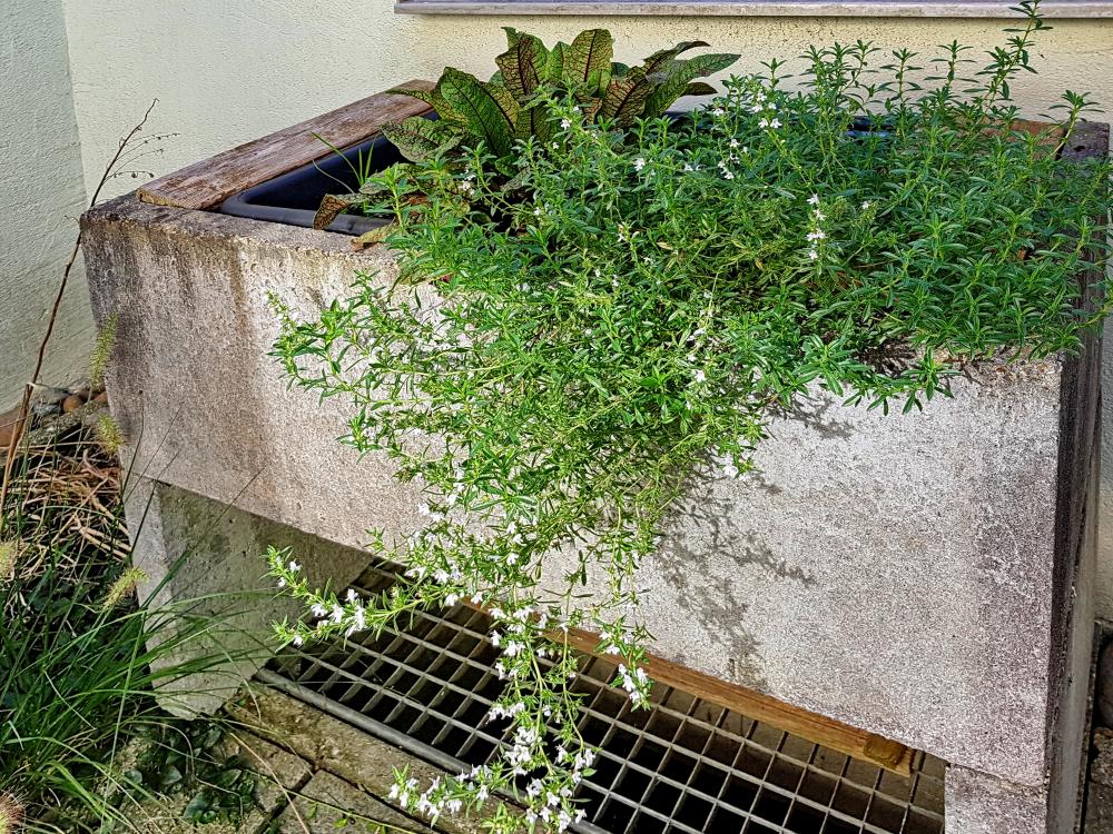 Satureja montana ssp. montana ‘Citriodora’, das Zitronen-Bergbohnenkraut, ist ein aromatischer, immergrüner Halbstrauch und eine vielseitige Kräuterstaude für Garten und Terrasse. Die Sorte ‘Citriodora’ besticht durch ihr frisches Zitronenaroma, das sich schon beim Berühren der schmalen, dunkelgrünen Blätter entfaltet. Von Juli bis Oktober zeigt der kompakte Zwergstrauch zahlreiche weiße bis zart rosige Blüten, die den dichten, halbkugeligen Wuchs elegant unterstreichen. Mit einer Höhe von etwa 25–40 cm und ähnlicher Breite eignet sich der robuste Gartenhalbstrauch hervorragend für den Beetrand, als Einfassung entlang von Wegen, für das Kräuter- und Bauerngarten-Beet sowie als Polsterstaude im Steingarten. Auch im Kübel auf Balkon und Terrasse überzeugt er als duftende Kübelpflanze, solo als kleiner Solitär oder in Gruppenpflanzung. Das Zitronen-Bergbohnenkraut liebt vollsonnige, warme Lagen und durchlässige, eher magere bis sandig-kiesige Böden, gern mit Kalkanteil. Staunässe sollte vermieden werden, da die Pflanze trockene, gut drainierte Standorte bevorzugt und dort besonders langlebig und formstabil bleibt. Ein moderater Rückschnitt im zeitigen Frühjahr fördert die Verzweigung und hält den Blütenstrauch kompakt. Gedüngt wird nur sparsam, in Töpfen empfiehlt sich eine mineralisch lockere Kräutererde mit Drainageschicht. Gut winterhart im Beet, benötigt die Topfkultur vor allem Schutz vor Winternässe. In der Küche sind die frischen oder getrockneten Triebe ein fein-zitroniger Begleiter zu Bohnen, Gemüse, Fisch, Fleisch und Grillgerichten; sie behalten ihr Aroma auch beim Mitkochen und verfeinern Tees und mediterrane Rezepte.