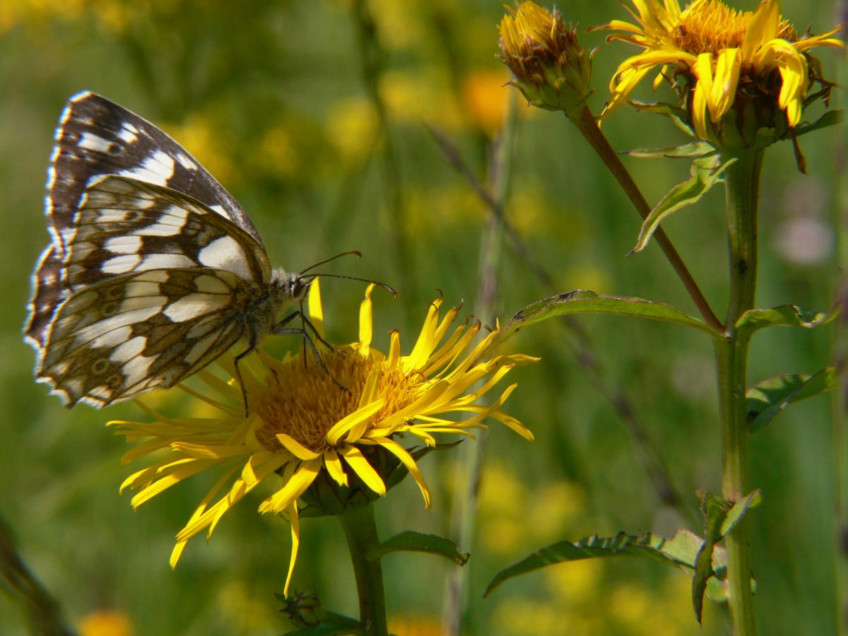 Zusätzliche Hilfe: Dürre Stengel stehen lassen für die Überwinterung der Puppe; Blumenwiesen in der nähe von Gehölzrändern und Hecken stehen lassen.